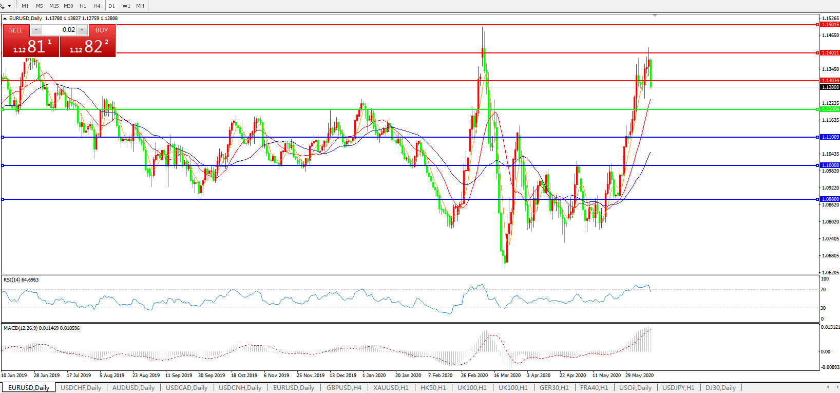 交易策略:1.1200上方看涨,目标1.1300、1.1400