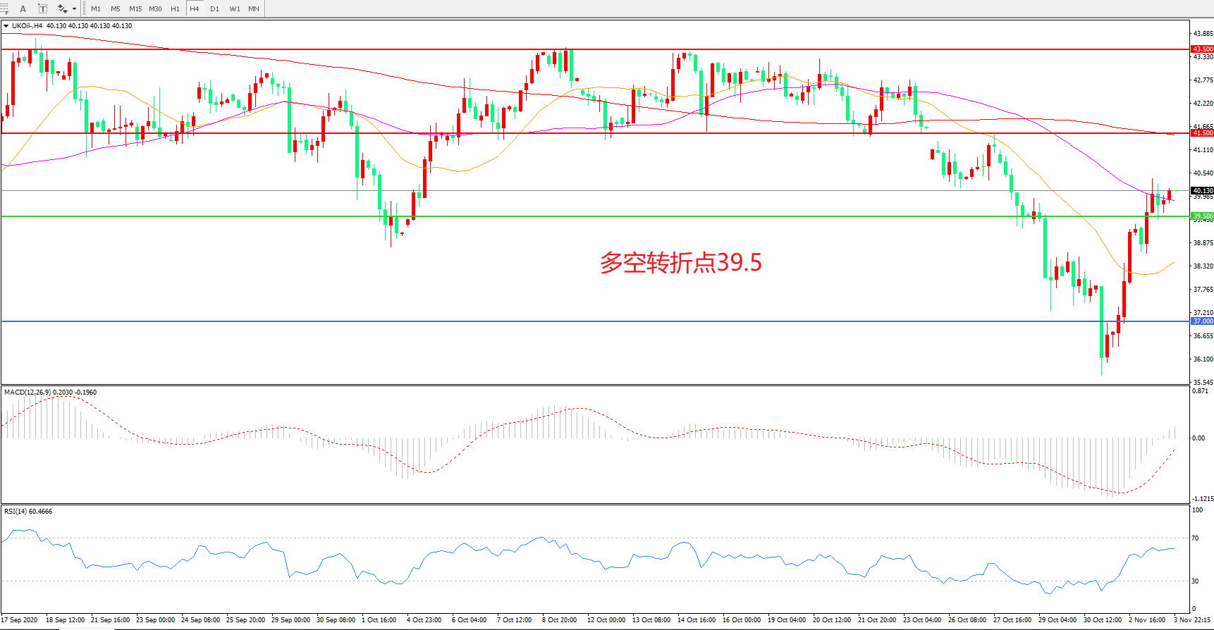 交易策略:  在39.50  之上看涨,目标41.50       43.50