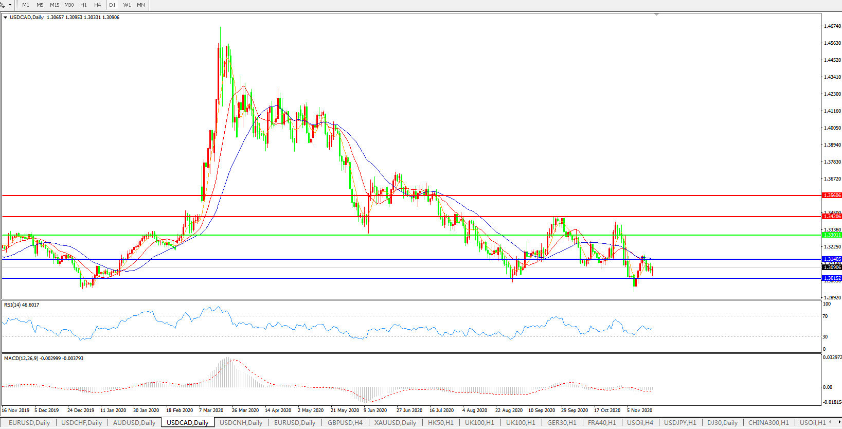 美元兑加元USDCAD 日线图: