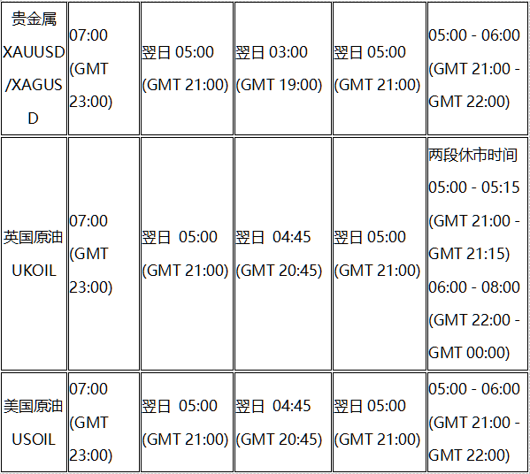 2022328(周一)起以下产品的交易将转为夏令时间