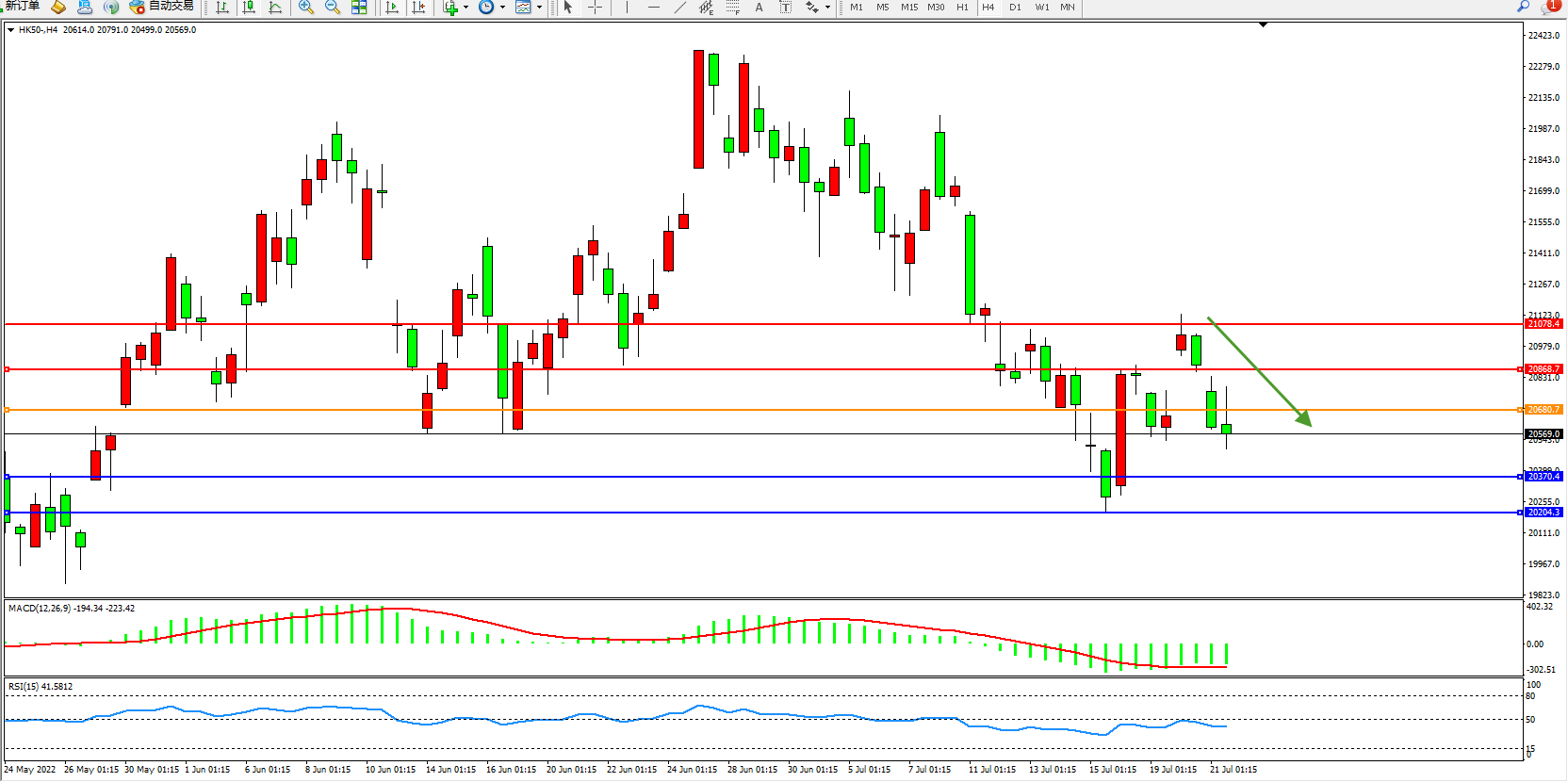 恒指HK50 4小时图