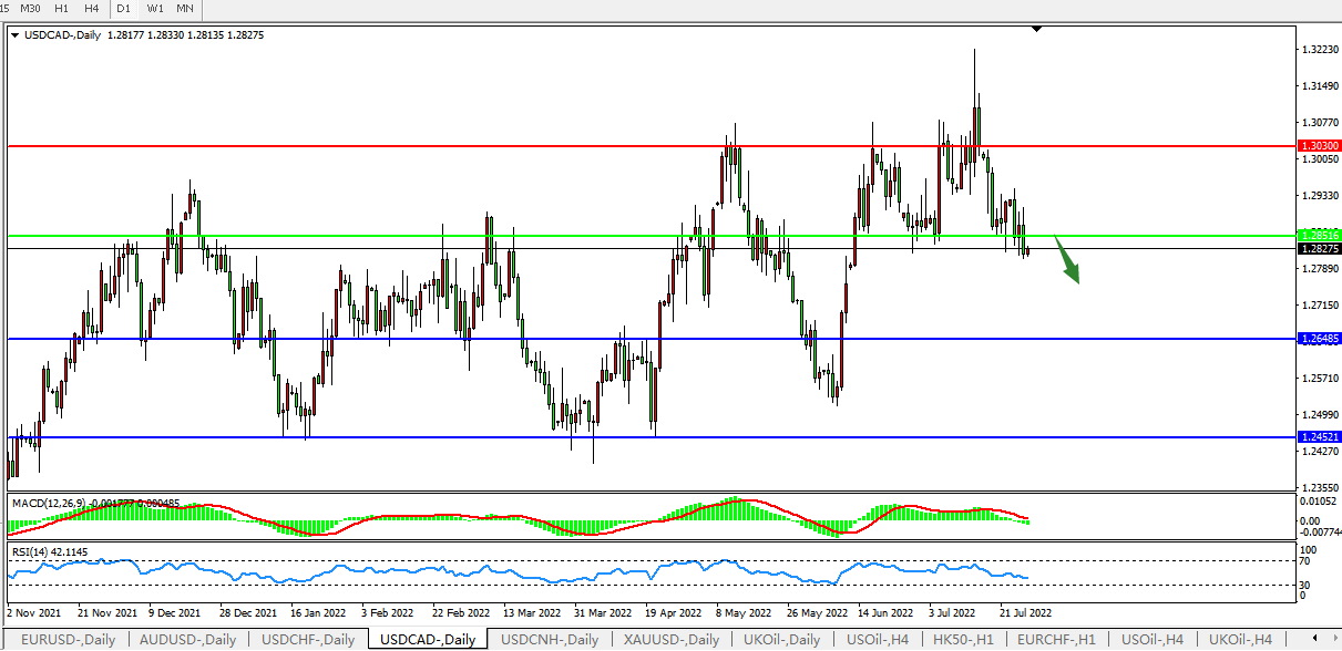 USDCAD:1.2850支撑被击穿