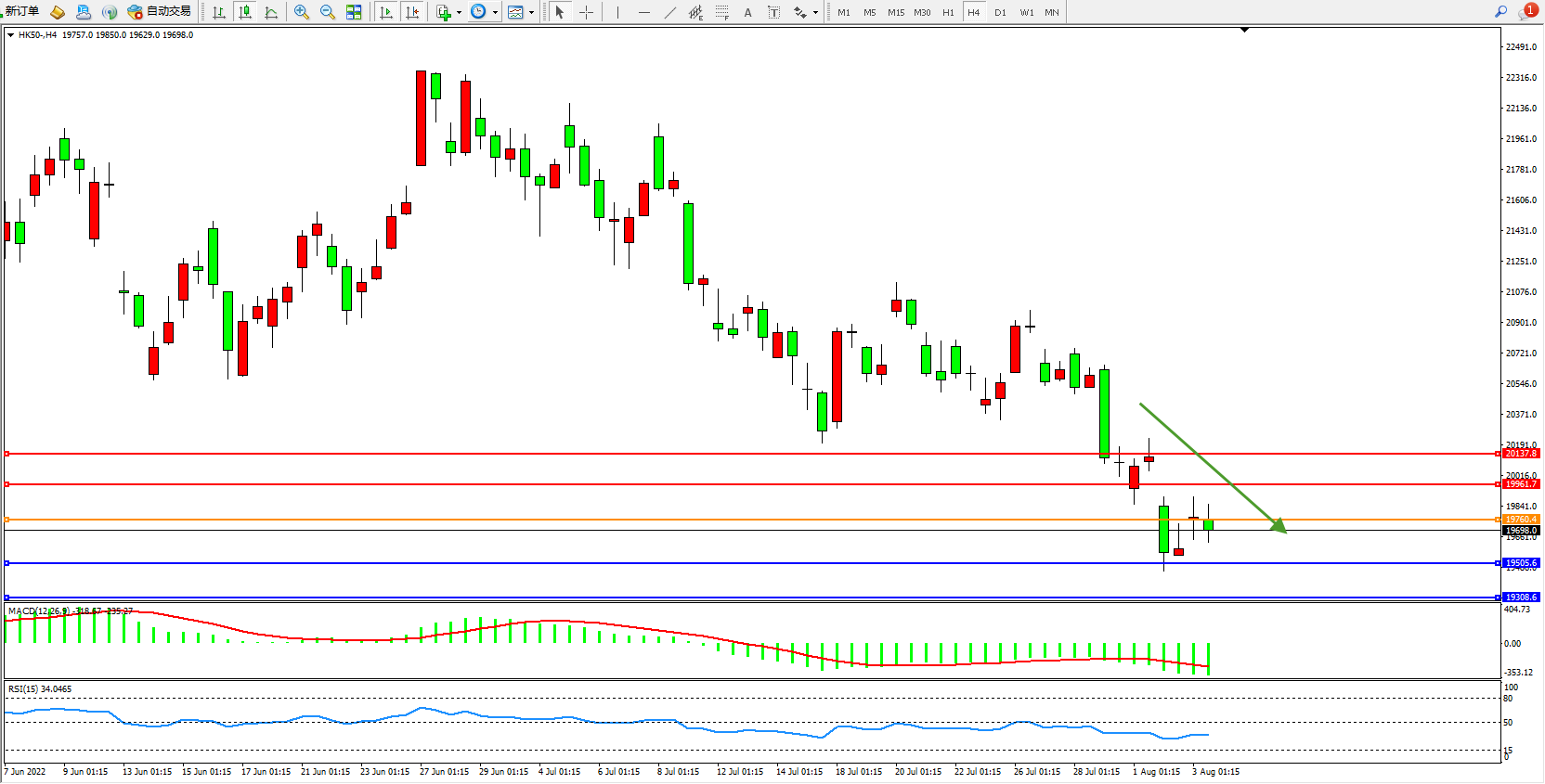 恒指HK50 4小时图