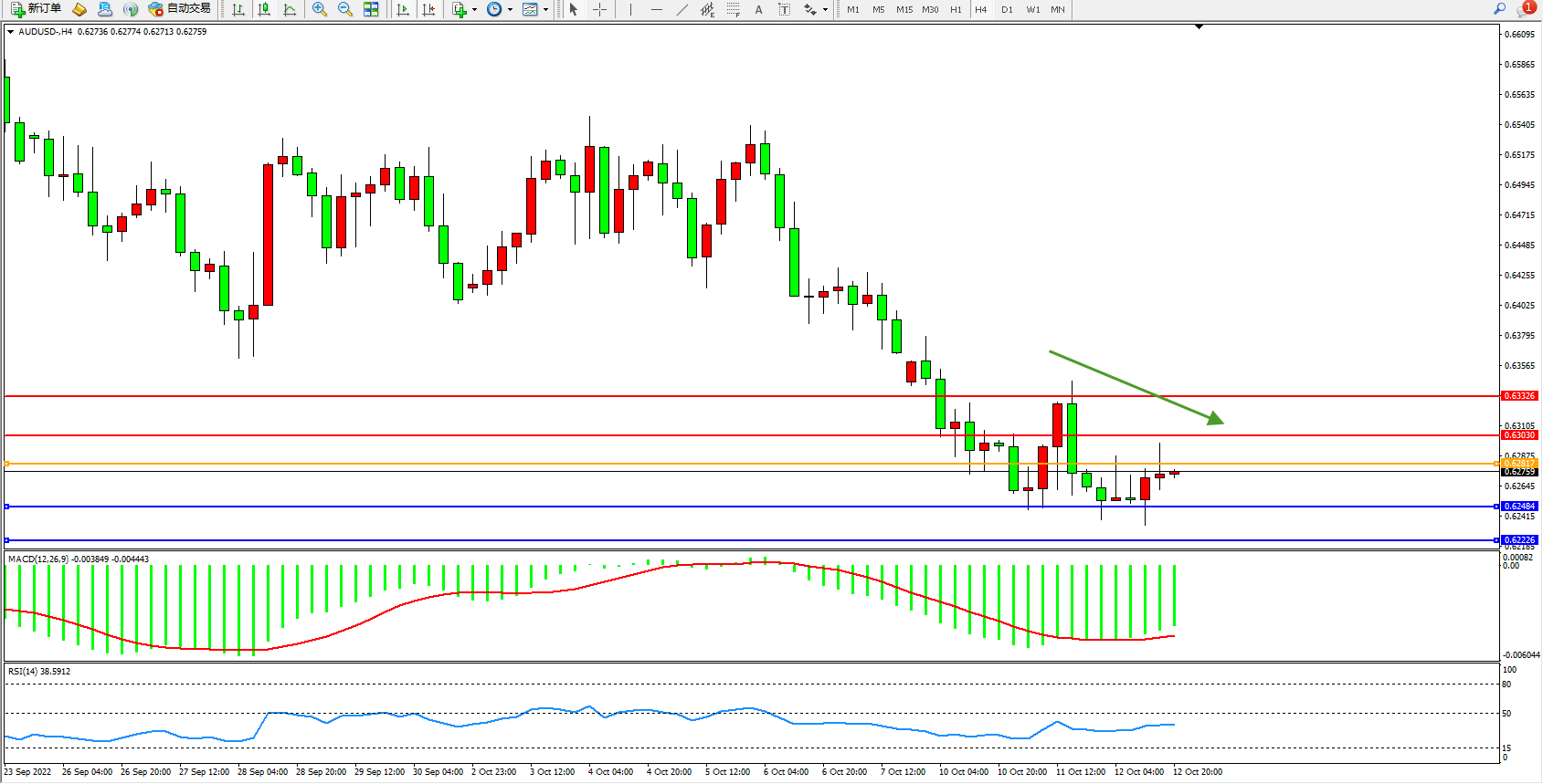 支撑:0.62484、0.62226