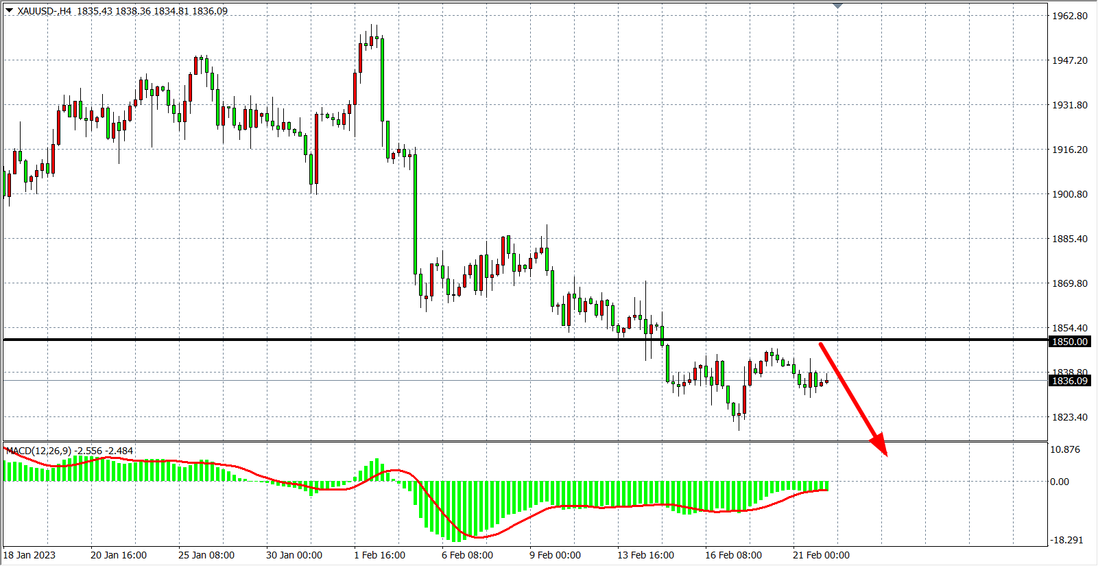 交易策略:在1850.00 之下看跌,目标1820.00 1800.00
