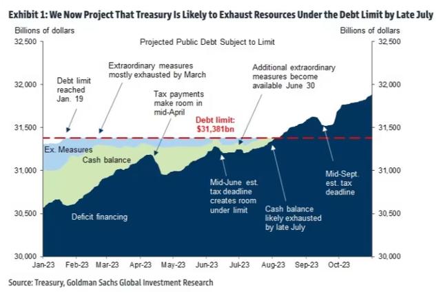 我们此前认为7月下旬面临危机的可能性略大,因6月中旬的纳税截止日期将为限额创造一些空间,且6月30日将提供额外的“非常规措施”。