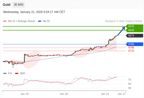 在 4785 之上,看涨,目标价位为 4930 ,然后为 4970 。